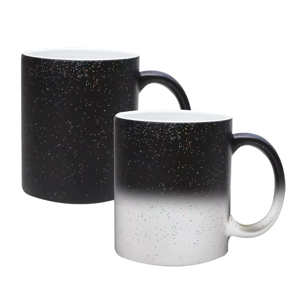 • Material: Caneca de porcelana mágica com glitter 325ml - gravada em sublimação ( ela revela a arte com líquido quente ou frio dentro da caneca)